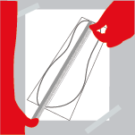 Przyłóż miarkę do najbardziej wysuniętych punktów stopy i narysuj proste linie przechodzące przez te punkty.